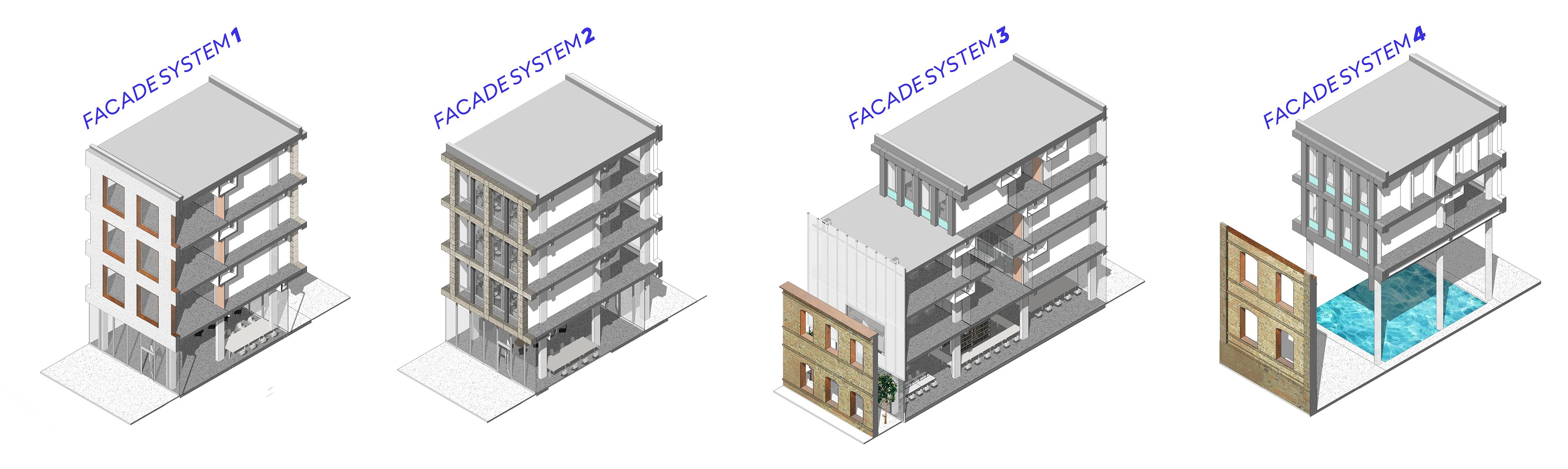There are two existing historic buildings on the site. These are not by the local codes required to preserve. The interior of the buildings is in poor condition and probably not suitable to use. But in order to preserve the urban memory and the city facade texture, we can just preserve the facades of the two buildings and place the new buildings behind the historical facades.